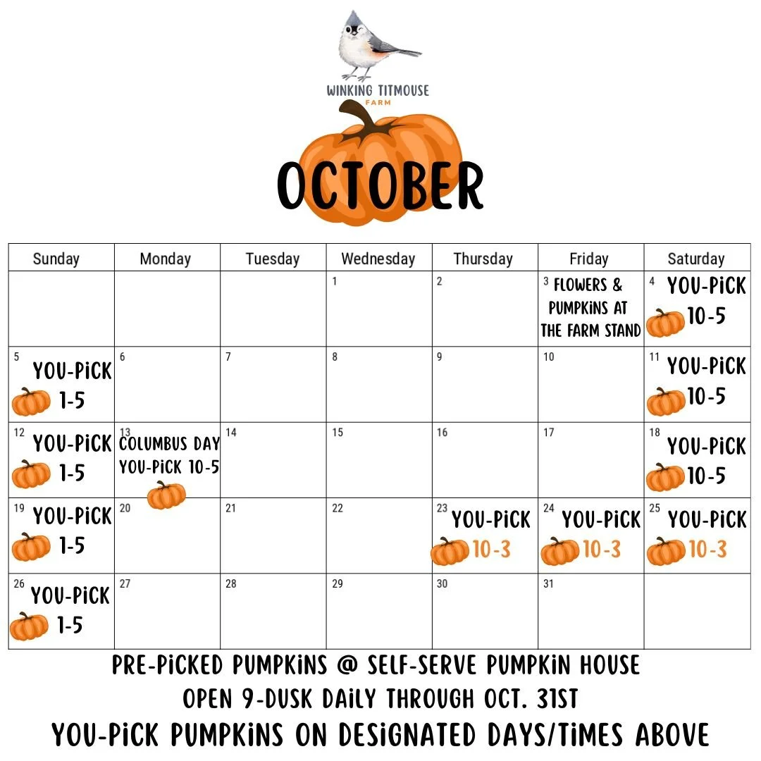 Other You-Pick dates shown on the calendar. Please don’t pick from the field on Non-U-Pick dates/times shown.